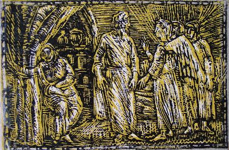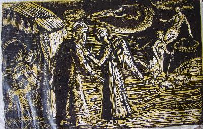 Abraham with Isaac and Ishmael Abraham sees a ram caught in a thicket